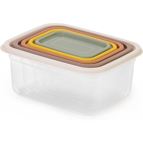 Практичные пищевые контейнеры для хранения и транспортировки салатов, вторых блюд, закусок, бакалеи и мелочей. Удобная прямоугольная форма с закруглёнными углами, крышки с язычками для лёгкого открывания. Благодаря системе «матрёшка» контейнеры и крышки компактно складываются, экономя пространство. Изготовлены из качественного пищевого пластика, легко моются вручную и в посудомоечной машине. Глянцево-матовая поверхность и интерьерные цвета делают их эстетичными даже на открытой кухне. (0,2л; 0,4л; 0,7л; 1,2л; 1,9л)