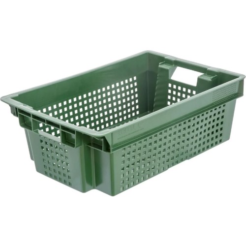 Ящик п/э, 600x400x200 мм, 1,4 кг. Универсальный ящик для овощей и фруктов, используется широко в области сельского хозяйства. Температурный режим от -18 до + 50 градусов. Вкладываемость. Штабелируемость Конусная конструкция позволяет максимально эффективно организовать логистический процесс и обеспечить экономию пространства до 60% при транспортировке в пустом виде.