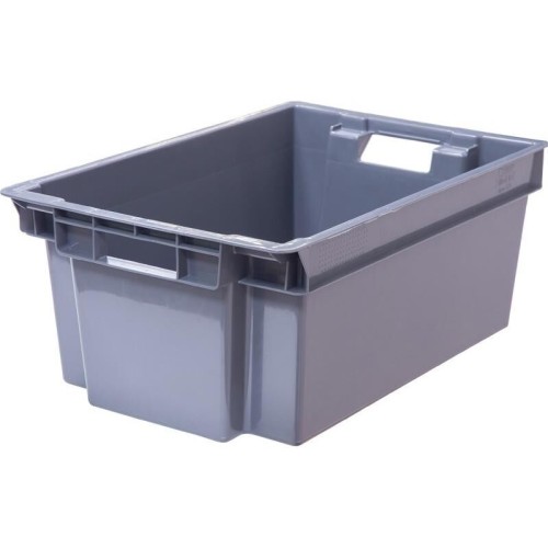 Ящик полимерный 600x400x250 "Север помнит" сплошной серый Подходят для рыбы, для мяса, для овощей, для фруктов, для хлебобулочных и колбасных изделий. Наличие ручек для удобства при погрузочно-разгрузочных работах. Ящики вкладываются друг в друга и штабелируются в сеты при повороте на 180 градусов. Экономия пространства при хранении пустых ящиков за счёт вкладываемости.