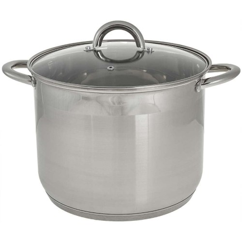 Объем 12 л Диаметр 26 см Высота 22 см Толщина стенок 0,5 мм,толщина дна 2,5 мм Кастрюля из высококачественной нержавеющей стали(SS201) Стеклянная крышка с отверстием для отвода пара Термосберегающее дно: пятислойное капсулированное дно с повышенной термоотдачей Стальные клепаные ручки Может быть использована на всех типах кухонных плит, включая индукционные Подходит для мытья в посудомоечной машине Упаковка: воздушно-пузырчатая пленка