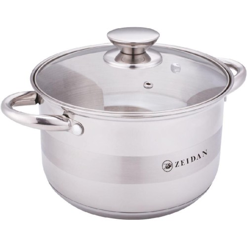Кастрюля со стеклянной крышкой - 1.3 л (d14 см), нержавеющая сталь, 5-ти СТЕПОВОЕ КАПСУЛИРОВАННОЕ ДНО, крышка - стекло, внутренняя – матовая полировка, снаружи - комбинированная полировка корпуса.