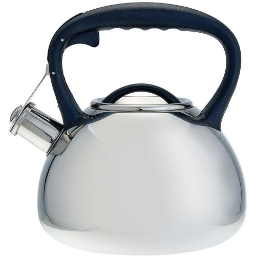 Объем 3 л Толщина стали 0,6 мм Чайник со свистком из высококачественной нержавеющей стали Зеркальная полировка Пластиковая ручка с кнопкой для открывания носика Цвет ручки и крышки: черный Индукционное дно Пригоден для использования на всех типах кухонных плит Упаковка: цветная коробка