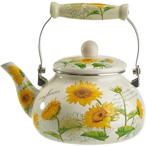 Параметры Объем 2,5 л Описание Чайник эмалированный с керамической ручкой Материалы: эмалированная сталь, нержавеющая сталь, керамика Серия: Подсолнухи Трехслойное внутреннее и внешнее эмалевое покрытие, устойчивое к воздействию пищевых кислот Эргономичная подвижная керамическая ручка Зачерненное дно с повышенной термоотдачей Классический дизайн Экологически чистые материалы Может быть использован на всех типах кухонных плит: электрических, газовых, керамических, индукционных Подходит для мытья в посудомоечной машине Упаковка: цветная коробка
