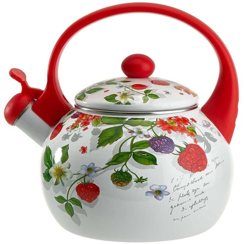 Параметры Объем 2,5 л Описание Чайник эмалированный со свистком Материалы: эмалированная сталь, нержавеющая сталь, пластик Серия: Ягоды Трехслойное внутреннее и внешнее эмалевое покрытие, устойчивое к воздействию пищевых кислот Эргономичная пластиковая ручка Зачерненное дно с повышенной термоотдачей Носик со свистком Классический дизайн Экологически чистые материалы Может быть использован на всех типах кухонных плит: электрических, газовых, керамических, индукционных Подходит для мытья в посудомоечной машине Упаковка: цветная коробка