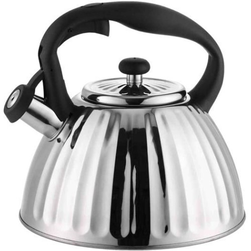 Металлический чайник на газ; Объем: 2 л; Высококачественная нержавеющая сталь; Свистит при закипании; Носик с крышкой; Эргономичная ручка не нагревается; Многослойное капсульное дно; Подходит для всех видов плит