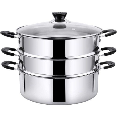 Мантоварка-пароварка Pomidoro со стеклянной крышкой. Диаметр 24см. 2 перфорированных яруса, высота 7см. Нижняя часть мантоварки может использоваться как кастрюля, объем 4 литра. Изготовлена из высококачественной нержавеющей стали. Безопасна для человека и не выделяет вредных веществ при повышенных температурах. Крышка изготовлена из термостойкого стекла с отверстием для выпуска пара. Ненагревающиеся бакелитовые ручки.