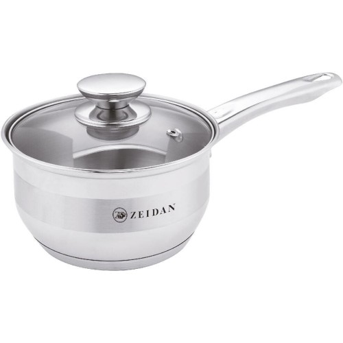 Сотейник со стеклянной крышкой - 1.3 л (d14 см), нержавеющая сталь, 5-ти СТЕПОВОЕ КАПСУЛИРОВАННОЕ ДНО, крышка - стекло, внутренняя – матовая полировка, снаружи - комбинированная полировка корпуса.