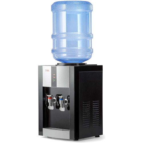 Настольный кулер с компрессорной системой охлаждения черного цвета с серебряными вставками. Отличается высокой производительностью (нагревает до 5 л и охлаждает до 2 л воды в час). Охлаждение и нагрев воды можно отключить с помощью тумблеров на задней панели кулера. Оснащен кранами типа "нажим кружкой с внутренней резьбой». Изготовлен из высококачественного пищевого пластика, а боковые черные стенки сделаны из металла, что позволяет крепить держатель на магните...