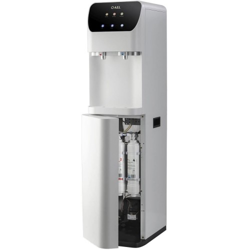 Пурифайер напольного типа с UF фильтрацией с компрессорным охлаждением. Вместительные баки холодной (8 л) и горячей воды (4,0 л). Большая производительность по нагреву: 8 л/ч (>85°С). Мощность нагревательного элемента 800 Вт. Сенсорная панель управления с блокировкой. Подача воды осуществляется нажатием на сенсорную панель, или порционно (можно налить 1 стакан воды при однократном касании). Съемные носики кранов подачи воды. Индикация работы пурифайера, нагрева и охлаждения воды. Корпус белого цвета. Производство: Китай. Комплектация: фильтры 12U UF, трубка 1/4 - 3 м, кран-врезки.