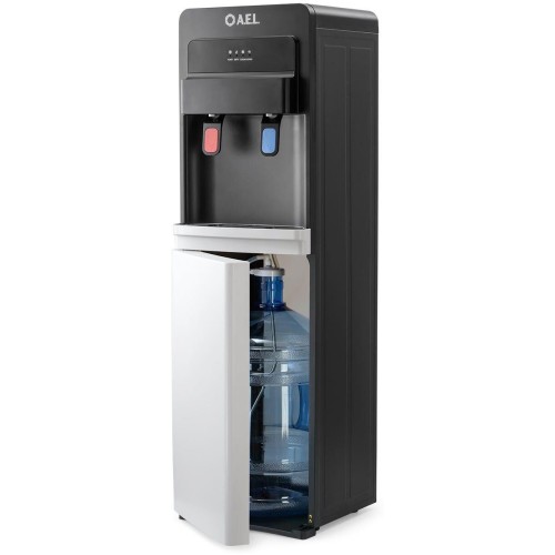 Кулер с нижней загрузкой бутыли с электронным охлаждением. Цвет: черный с белой вставкой. Модель оснащена двумя краниками нажим кружкой (горячая/холодная). Стильный лаконичный дизайн отлично будет смотреться в офисе и дома. В процессе эксплуатации аппарата в тот момент, когда вода в бутыли закончилась, на панели индикации загорится индикатор наличия воды в бутыли. Это символизирует о том, что необходимо заменить пустую бутыль.