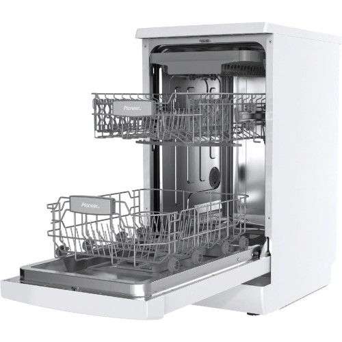 Посудомоечная машина 45 см; Класс энергоэффективности А++; 10 комплектов; 8 программ (ЭКО, Стекло, 90 мин, Быстрая, Замачивание, Авто, Интенсивная, Нормальна); 3 корзины; Кнопочное управление; LED дисплей (цвет белый); Таймер отсрочки 1-24 ч; Блокировка от детей; Мощная мойка\Сильная мойка; Дополнительная сушка\Сушка с подогревом; Двойная мойка; Напряжение 220-240 В; Частота 50 Гц; Номинальная мощность 1760~2100 Вт; Давление воды на входе 0,04~1,0 МПа; Мощность нагревательного элемента 1800 Вт; Шум 44 дБ(А); Длина шнура питания 1500 мм; Длина впускного шланга 1500 мм; Длина выпускного шланга 1614 мм; Съемная крышка; Размер 448*610*845 мм; Вес нетто 34,5кг; Цвет белый с черным верхом