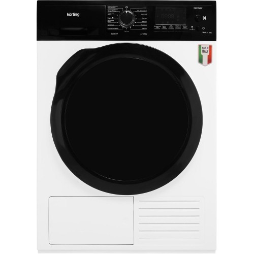 Сушильная машина HEAT PUMP с тепловым насосом; Габариты (ВхШхГ): 84х59,6х63 см; Загрузка: 9 кг; Электронное управление; Цифровой дисплей с отображением времени до окончания программы; LED индикация настроек и дополнительных функций; 15 программ; Отложенный старт до 24-х часов; Сушка по времени; Сушка по остаточной влажности; Функция: "защита от сминания"; Деликатная сушка; Половинная загрузка; Функция "Защита от детей"; Съемный резервуар для слива конденсата; Индикация заполнения резервуара; Индикация загрязнения фильтра; Защитная крышка люка; Съемная корзина-держатель в комплекте; Цвет: белый; Класс энергопотребления: A++