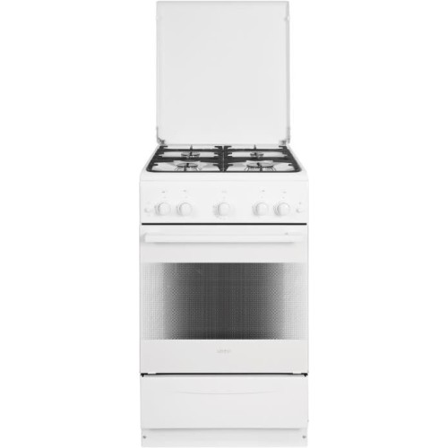 Габариты ШхГхВ, см: 50х58.5х85; Объем духового шкафа, л: 52; Тип очистки: Гидролизная; Цвет: Белый; Материал варочной поверхности: Эмаль; Материал решеток варочной поверхности: Чугун; Крышка плиты: Металлическая; Электророзжиг горелок стола: Кнопка розжига на панели; Тип направляющих духового шкафа: Съемные проволочные; Внутреннее покрытие духового шкафа: Эмаль легкой очистки SMART CERAMIC; Количество стекол в дверце духового шкафа: 2; Ящик для посуды и принадлежностей: Откидная крышка; Внутреннее освещение духового шкафа; Контроль температуры духового шкафа: Кран с безопасностью; Нижний нагрев; Жаровня: 1; Регулировочные ножки; Комплект сменных сопел; Противень: 1; Решетка варочной поверхности: 1; Решетка духового шкафа: 1; Диапазон номинального напряжения сети, В: 220-230; Номинальная частота сети, Гц: 50; Основная горелка духового шкафа, Вт: 2350