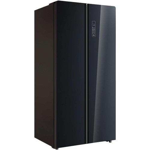 Холодильник Side-By-Side; Габариты (ВхШхГ): 178,8х89,5х74,5 см; Сенсорное управление Smart Touch, Full NO FROST, Dynamic Air Cooling; Режимы «Супер заморозка», «Супер охлаждение»; LED освещение камеры; 2 ящика для овощей; Полки из закаленного стекла; Держатели для бутылок; Контейнер для льда; Объем холодильного отделения: 335 л; Объем морозильного отделения: 175 л; Цвет: черное стекло; Класс энергопотребления: A+