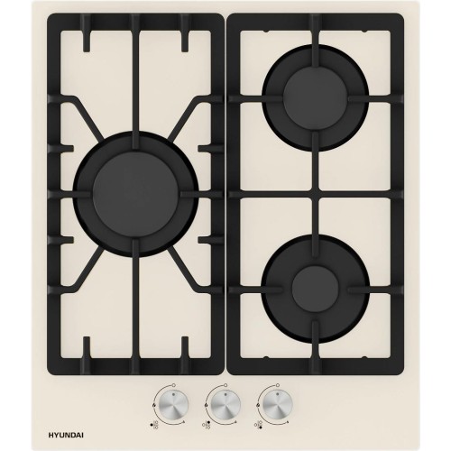 Газовая варочная поверхность, ширина 45 см, 3 газовые конфорки, электроподжиг, фронтальные чугунные решетки, материал поверхности - закаленное стекло, цвет - бежевый.