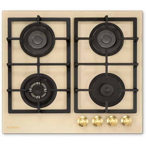 Газовая варочная поверхность, ширина 60 см, 4 газовые конфорки, поворотные переключатели, электроподжиг, чугунные решетки, цвет - бежевый
