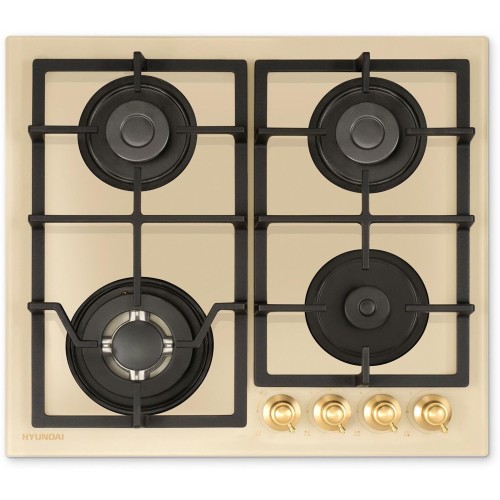 Газовая варочная поверхность, ширина 60 см, 4 газовые конфорки, поворотные переключатели, электроподжиг, чугунные решетки, цвет – бежевый
