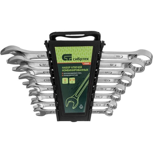 СИБРТЕХ Набор ключей комбинированных, 8-19 мм, CrV, 8 шт 15448