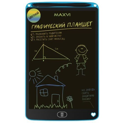 LCD планшет для заметок и рисования, 10,5", Цветной дисплей, Угол обзора 160°, Батарея CR2016, пластиковый корпус, цвет голубой