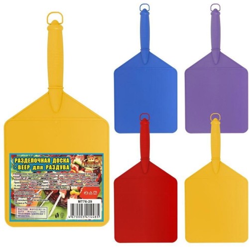 Доска-веер решит сразу две задачи во время приготовления шашлыков На ней можно нарезать продукты и ей же можно раздувать угли. Это незаменимое приспособление для поддержания оптимальной температуры в мангале. Изготовлено: пластмасса (полипропилен). Внимание Не допускается прямой контакт с огнем.