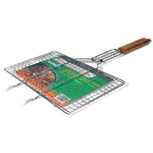 Двойная решетка для гриля L=59 см с деревянной ручкой- для мяса, упоры для мангала Коробка: 66*35,5*35 см, вес 19 кг, 12 кор/пал