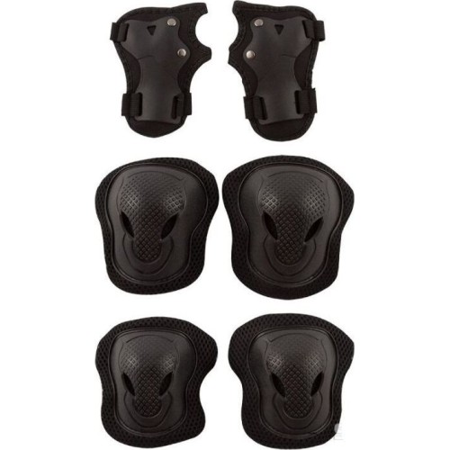Набор для взрослых. Для безопасного катания и защиты от мелких травм и ушибов: налокотники (2 шт), наколенники (2шт), защита запястья (2шт). Упаковано в сетчатую сумку для хранения и переноски защита коленей: 14x16 защита запястий : 13x12 защита локтей: 12x13 Материалы: пластмасса, полиэстр