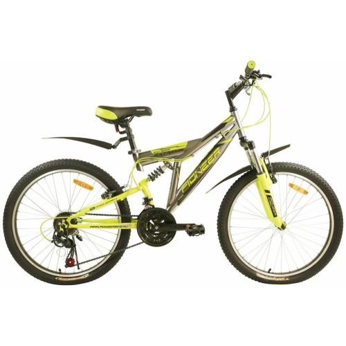Размер колеса: 24"Назначение: ПОДРОСТКОВЫЕТип: ГОРНЫЙ ДВУХПОДВЕСРазмер рамы: 15"Материал рамы: стальКоличество скоростей: 21Серия переключателей скоростей: PIONEERВилка: амортизирующая, GOODТормоза передние/задние: V-brake/V-brakeПокрышки: PIONEER, 24"x2,125