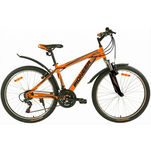 Размер колеса: 26".Назначение: ДЛЯ ВЗРОСЛЫХ.Тип: ГОРНЫЙ.Размер рамы 18".Материал рамы: сталь.Количество скоростей: 21.Серия переключателей скоростей: Shimano TourneyВилка: амортизирующая, GOODТормоза передние/задние: V-brake/V-brakeПокрышки: PIONEER