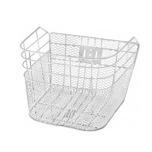 Велокорзина JL-027 передняя стальная белая, размер 35х25х24 см, стойки для 28" с креплением за ось втулок