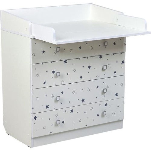 Комод имеет откидную пеленальную поверхность, которая снимается. Фасад и корпус выполнен из ЛДСП производства Kronospan (Австрия). Состоит из 4 ящиков с эргономичными ручками. Ящики на роликовых направляющих. Габариты (ВхШхГ): 92,2х80,4х46,7см. Размер пеленального матрасика на комод: 72х77 см..