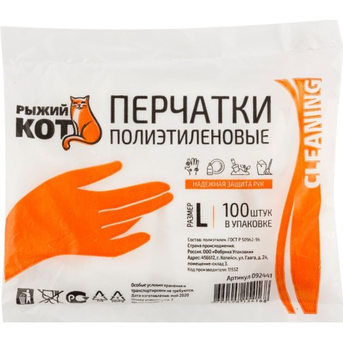 • РЫЖИЙ КОТ Перчатки полиэтиленовые 100 шт, размер L (092441)
