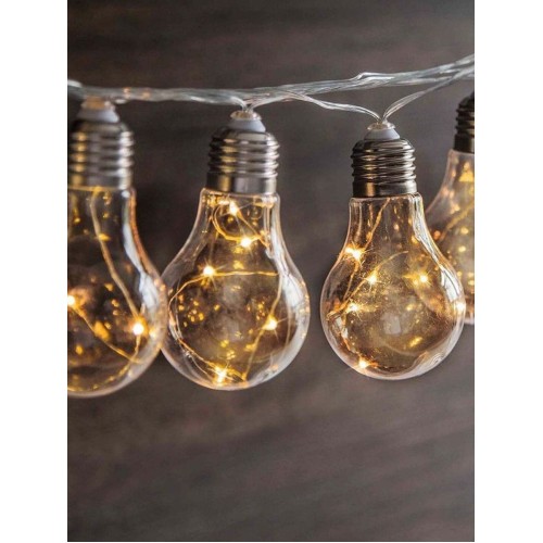 Садовая гирлянда на солнечной батарее "Лампочка". 40 светодиодов по 0.03Вт теплого белого света. Аккумулятор АА NI-MH 600мАч. Заряжается от солнечного света, включается автоматически с наступлением темноты. Время непрерывной работы при полностью заряженном аккумуляторе - 8 часов. Длина световой части - 1,8 м. Общая длина - 3,6м. IP44