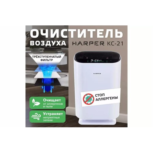 Очиститель воздуха Harper KC-21 предназначен для очистки воздуха в помещениях площадью до 30 м2. Производительность прибора - 200 м?/ч . Благодаря системе фильтрации с НЕРА-фильтром, устройство очищает воздух от частиц пыли и бактерий, обеспечивая идеальные условия для жизни или работы. При помощи панели управления можно задать таймер (до 12 часов), ночной режим или включить функцию ионизации воздуха. Очиститель воздуха Harper KC-21 рассчитывает срок службы фильтра и с помощью индикатора напоминает о необходимости замены фильтра. Обслуживаемая площадь: 15-30 м2 Показатель интенсивности нагнетания очищенного воздуха (PM CARD): 200 м?/ч Температура (на дисплее): да Потребляемая мощность: 35 Вт Уровень шума: 30 дБ Функция ионизации: да Таймер: 12 ч. Метод управления: сенсорное Пульт ДУ: да Предварительный фильтр: да HEPA-фильтр: да Угольный фильтр: да Функция напоминания замены фильтра: да Ночной режим: да Материал корпуса: пластик Длина сетевого шнура: 1.2 м.