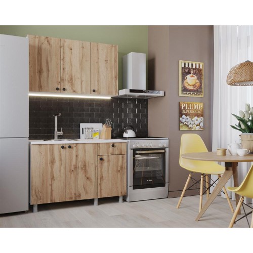 Кухня ДЕМИ - это прекрасное соотношение цены и качества.Столешница в комплекте. Корпус и фасад изготовлены из ЛДСП 16 мм. Цвет: корпус: Белый; фасад: Дуб Вотан столешница: Гранит Белый. Функционально - компактная кухня станет украшением малогабаритной квартиры или дачного дома. Эстетично - современное цветовое решение позволит гармонично вписать ее в любой интерьер. Практично - недорогие кухонные гарнитуры ДЕМИ будут радовать Вас долгие годы. В состав входит: Шкаф кухонный навесной, Тумба кухонная, столешница 28 мм .. Размер изделия: 120х209х60 см..