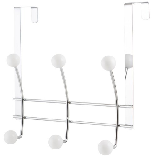 Вешалка навесная с 6ю крючками Крепится на дверь (без сверления, клея и пр.) размер: 25*23*8 см длина внутреннего крючка: 4.5CM (толщина полотна не более 4,5 см) Макс. нагрузка — 6 кг материал: хром.металл, пластик