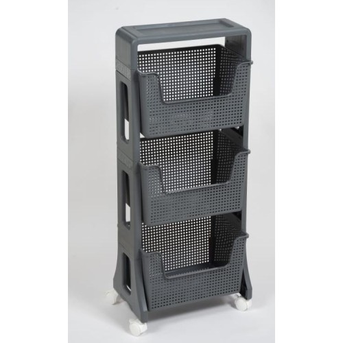 Материал: полипропилен. Цвет: серый. Количество полок: 3 шт. Наличие колес: есть. Ширина: 395 мм. Высота: 943 мм. Глубина: 260 мм.