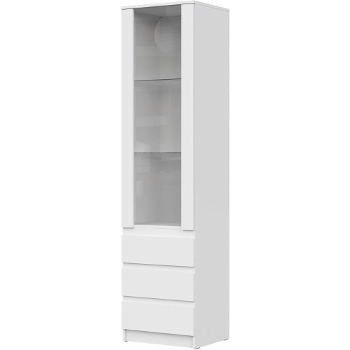 Шкаф-витрина с распашной дверцей со стеклом и тремя ящиками. Корпус и фасад изготовлены из ЛДСП 16 мм. Три цвета на выбор - Белый, Дуб Сонома, Дуб Вотан. Размер изделия (ШхВхГ) 50,1 х 200,3 х 43,3 см.
