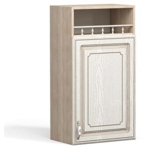 В комплект модуля шкаф навесной на 500 мм ШКН 500 П входит корпус + фасад , балюстрада. Багет верхний в комплект не входит, рассчитывается отдельно на всю длину кухни. Фасады МДФ + пленка ПВХ Корпус изготавливается из ЛДСП. Шкаф навесной на 500 мм с глухим фасадом и полочкой с балюстрадой, удобный и вместительный, с одной внутренней полкой. Дверца навешивается с любой стороны. Корпус изготавливается из ЛДСП. Фасады выполнены из МДФ, окрашены, патина нанесена вручную, сверху защищены матовым итальянским лаком. Габариты высота: 920 мм Габариты ширина: 500 мм Габариты глубина: 300 мм Стиль: Классика Геометрия: Прямой Материал каркаса: ЛДСП Материал фасада: МДФ. Цвет корпуса: ясень Цвет фасада: ясень
