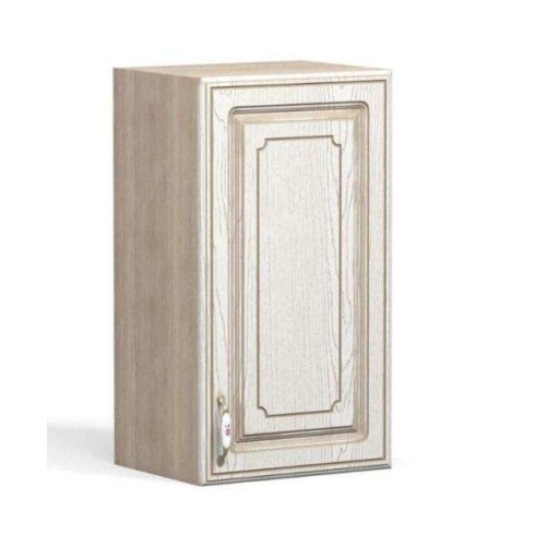 Шкаф навесной Анжелика ШКН 400-один из элементов модульного гарнитура Анжелика. Фасад выполнен из МДФ, покрытый пленкой ПВХ с последующим патированием по итальянской технологии и нанесением лака. Корпус ЛДСП 16 мм. Ручка металлическая с керамической вставкой. Цвет ручки бронза, размер 96 мм. Верхний багет в стоимость не входит и приобретается отдельно. Размеры: Глубина, мм: 300, Ширина, мм: 400, Высота, мм: 720, Цвет корпуса: Дуб молочный Цвет фасада: Ясень патина, Материал корпуса: ЛДСП, Материал фасада: МДФ, Коллекция: Анжелика, Стиль: Классика, Поставка изделия: В разобранном виде, Кол-во упаковок: 2, Комнаты применения: Кухня, Объем, куб.м.: 0,04, Вес, кг: 14