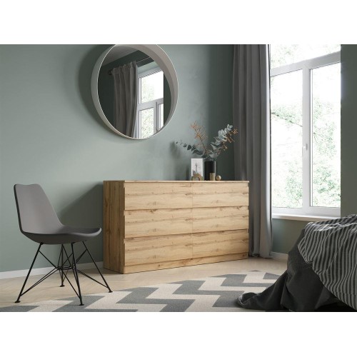 Комод с шестью ящиками. Корпус и фасад изготовлены из ЛДСП 16 мм. Три цвета на выбор - Белый, Дуб Сонома, Дуб Вотан. Функционально - широкий модульный ряд позволяет создавать любой интерьер. Эстетично - все фасады имеют скошенный край. Практично - вместительные выдвижные ящики на роликовых направляющих. Размер изделия (ШхВхГ)156,2 х 85,7 х 43,3 см.