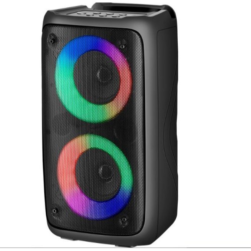 Акустическая Bluetooth система. Суммарная выходная мощность (RMS) 20 Вт Звуковая схема 2.0, моно Размер динамиков 2 x 3 " Акустическое оформление фазоинверторного типа Расположение порта фазоинвертора фронт True Wireless Stereo (TWS) есть Диапазон частот 150—18000 Гц Соотношение сигнал/шум 85 дБ Время работы от аккумулятора 2 час Время зарядки аккумулятора 5 час Интерфейс AUX-аудиовход Подсветка светодиодная Световые эффекты есть Интерфейс беспроводной связи Bluetooth 5.0 Дальность действия 10 м Питание от USB, 5 В , Li-Ion аккумулятор Емкость аккумулятора 2400 мА·ч Встроенный FM-приемник есть Радиочастотный диапазон МГц Поддержка карт памяти Micro-SD есть Максимальный поддерживаемый объем карты памяти MicroSD 32 ГБ Поддержка USB-флеш-накопителя есть Максимальный поддерживаемый объем памяти USB-флеш-накопителя 32 ГБ Форматы воспроизведения аудио MP3 Вход для микрофона 3,5-мм мини-джек Количество микрофонных входов Один Материал корпуса пластик Высота 292 мм Ширина 160 мм Глубина 150