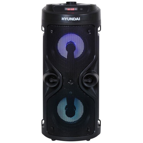 Музыкальный центр HYUNDAI H-MC150 при небольших габаритах выдает громкое чистое звучание. Работа от аккумулятора позволяет брать колонку с собой, а функция караоке разнообразит вечеринку с друзьями. Градус веселья поднимет светодиодная подсветка, а пульт ДУ позволит управлять тусовкой из любой точки квартиры, дома или уличной танцплощадки. HYUNDAI H-MC150 умеет: воспроизводить музыку с различных источников; работать в качестве громкоговорителя и караоке-системы; регулировать звучание частот треков. Источники воспроизведения Слушайте музыку с телефона, карт памяти или флешек. За беспроводное соединение отвечает модуль Bluetooth версии 5.0. Его стабильная работа сохраняет сигнал и высокую скорость передачи информации даже при наличии большого количества внешних помех. За чистоту воспроизведения отвечают два динамика с суммарной мощностью в 50 Вт. Для H-MC150 подходят карты памяти формата MicroSD и USB накопители размером до 32 Гб.