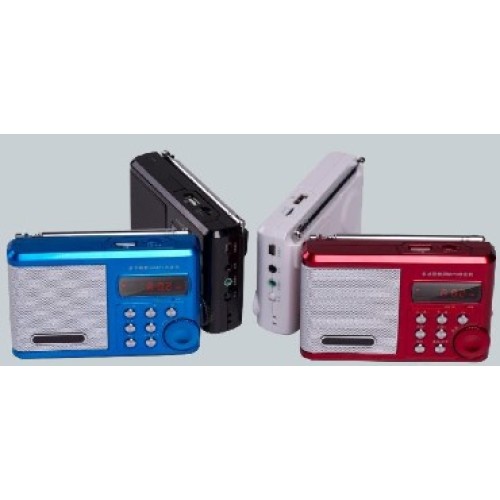 Мини-аудиосистема, диапазон воспроизводимых частот - 90 - 18000 Гц, в, выходная мощность3 Вт (RMS), поддержка УКВ и FM, выдвижная антенна, радиочип 8035, сменный аккумулятор на 12-15 часов автономной работы, пассивный сабвуфер BassBooster, поддержка USB-аудио, выборочное удаление станций из памяти, эквалайзер и три режима повтора для MP3, а также умеет работать как внешняя USB-колонка с цифровой передачей звука.