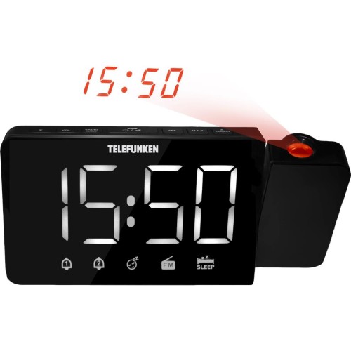 Светодиодный дисплей с высотой символов 1,6” (4.06 см) Регулируемая яркость дисплея (3 уровня) Кварцевый стабилизатор Два будильника Два режима работы будильника (сигнал/радио) Отложенный сигнал будильника Отключение радио по таймеру Настраиваемый проектор Регулируемая яркость проектора (2 уровня) FM-тюнер (87.5 – 108 МГц) Выходная мощность: 1 Вт Питание от адаптера (в комплекте) Индикация: белая Цвет: чёрный