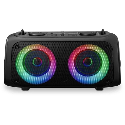 ЗвукСтерео Суммарная мощность40 Вт ПитаниеАвтономное, от электросети Беспроводная связьBluetooth РазъемыUSB Type-A (для флэшки), вход аудио Разъем для зарядкиMicroUSB Время работы10 ч Емкость аккумулятора3600 мА·ч ОсобенностиFM-радио, встроенный микрофон (функция HandsFree), дисплей, поддержка microSD, ремешок, световые эффекты
