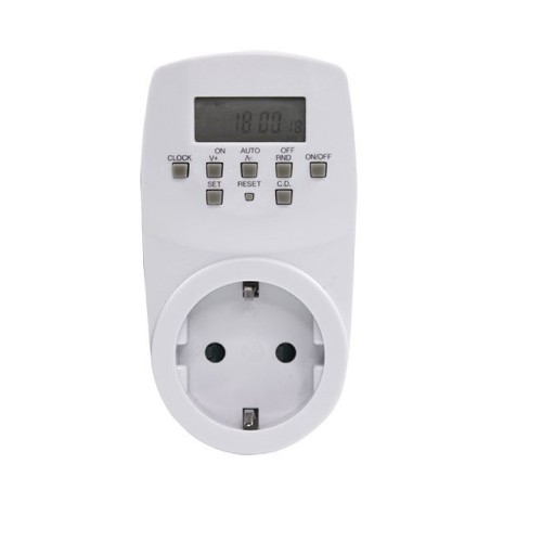 Розетка с электронным таймером REXANT RX — предназначена для подключения бытовых и промышленных приборов большой мощности: утюги, калориферы, светильники большой мощности, прожектора уличного освещения, электрокотлы и т.д. Характеристики: • Тип таймера — недельный, электронный • Шаг — 1 минута • Максимальная нагрузка — 3500 ВТ / 16А • Степень защиты — IP20 • Точность хода — 1 минута в месяц • Работа от встроенного аккумулятора — не менее 100 часов