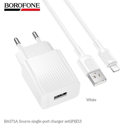 • BOROFONE (6941991122583) BAS71Ai 1USB 2.1A для Lightning 8-pin White