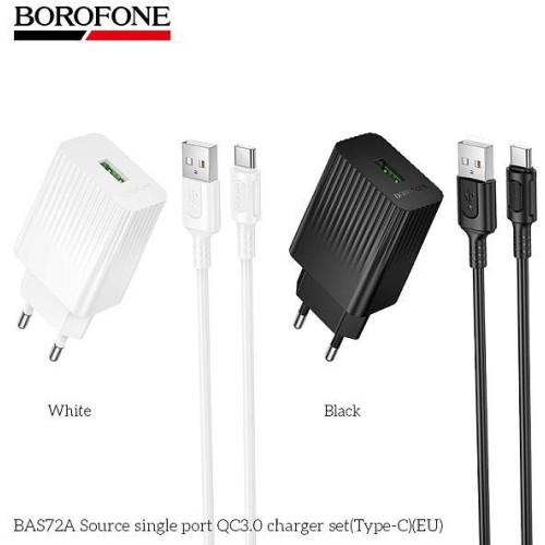 Сетевое зарядное устройство Borofone BAS72A – надежный адаптер с функцией быстрой зарядки, который поможет вам всегда оставаться на связи. Оснащен стандартной сетевой вилкой и USB портом для подсоединения кабеля, что делает его универсальным решением для зарядки смартфонов, планшетов и другой цифровой техники. Блок питания Borofone BAS72A поддерживает функцию быстрой зарядки QC 3.0 и выдает максимальную мощность в 18W. Изготовлен из качественных материалов: огнезащитного PC и ABS-пластика, что обеспечивает безопасность и долговечность использования аксессуара. Поставляется в комплекте с кабелем USB - Type-C длиной 1 м.
