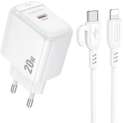 Сетевое зарядное устройство Borofone – это компактное и стильное решение для быстрой и безопасной зарядки ваших устройств. Изготовлено из прочного ABS-пластика, который обеспечивает надежность и долговечность аксессуара. Оборудовано портом Type-C с выходной мощностью до 20 Вт и поддержкой популярных протоколов быстрой зарядки: PD, QC, FCP и AFC. Такое устройство идеально подходит для зарядки смартфонов, планшетов и других гаджетов, требующих быстрой подачи энергии. В комплекте идет кабель длиной 1 метр Type-C на Lightning, что делает набор особенно удобным для пользователей техники Apple