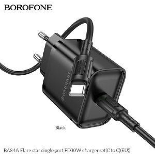Универсальное сетевое зарядное устройство Borofone BA84A для электронной техники с портом Type-C. Изготовлен из ABS-пластика. Прочный и компактный. Поддерживает быструю зарядку. В комплекте поставляется зарядный кабель Type-C - Type-C длиной 1м